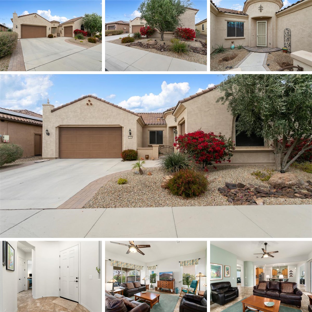 Looking for some backyard privacy? This 2-bedroom, 2-bath, 2-den Serenity model provides it. Located along a landscaped corridor, this home offers a lot of extras. The kitchen includes granite counters, a gas cooktop with tile backsplash, built-in oven and microwave, and refrigerator. The cabinets have a natural wood tone with rollout trays in the lower cabinets. The flooring is all upgraded with tile and luxury vinyl plank in the bedrooms. The owner's suite features dual vanities, upgraded fixtures & lighting with cultured marble counters and shower surround. The laundry includes upper cabinets and counter space while both garages include overhead storage racks. The back of the home features an extended paver patio, mature landscaping and view fencing with plenty of privacy.